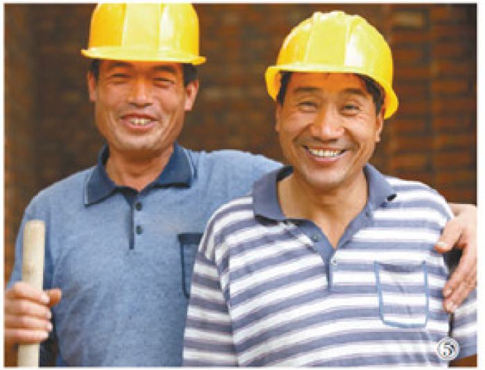 建筑工人喜笑颜开