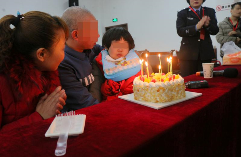 “祝你生日快乐,祝你生日快乐!”随着生日蛋糕上9只蜡烛被点燃,全场民警一边鼓掌一边为文文唱起了生日歌。随后渝都监狱二监区和江北公安分局分别给文文送上了慰问金,拍下了全家福。