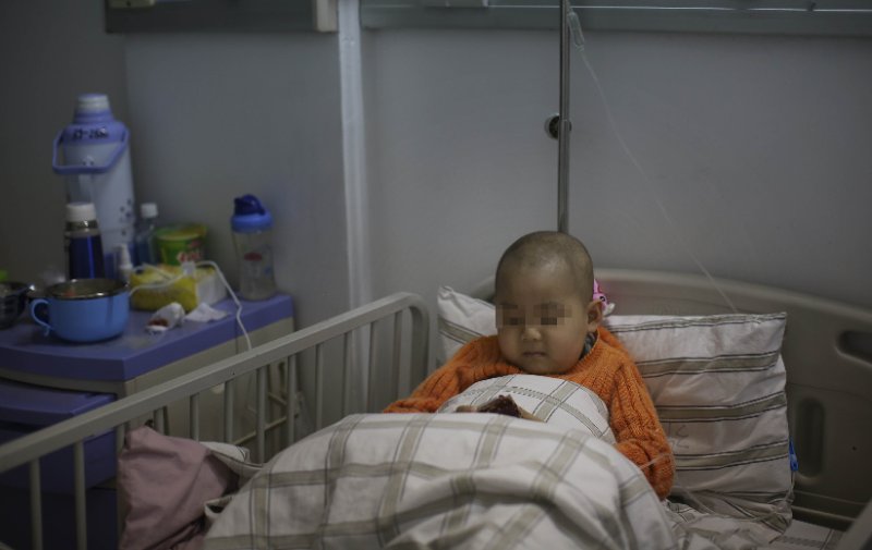 幼小的龙龙静静蜷在病床一边,脸色蜡黄。化疗阶段,他一天要打34支吊针,低烧、呕吐、水肿和全身疼痛是最常见的不良反应。生病让他变得寡言少语,在他少有的清醒时刻,他会默默看着手机里和爸爸的合影发呆。