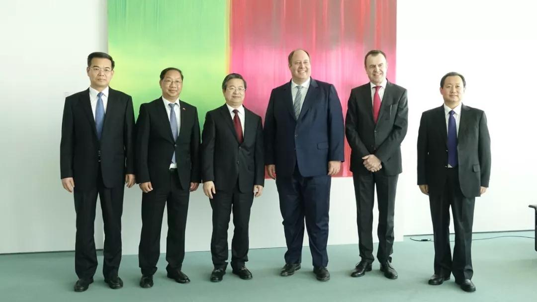 图为陈一新与德国联邦总理府部长布劳恩会见前合影