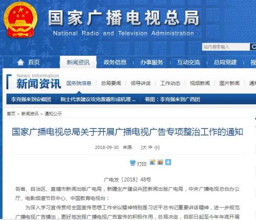 中新网客户端9月30日电(记者 宋宇晟)国家广播电视总局今日发布“关于开展广播电视广告专项整治工作的通知”。通知要求,自即日起至今年年底开展广播电视广告专项整治工作。