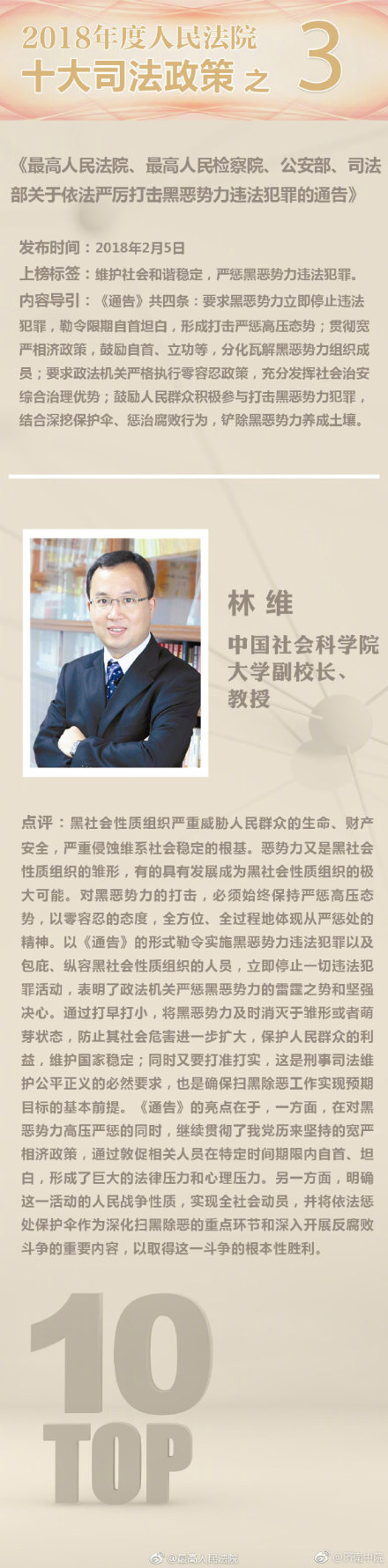 中国长安网1月8日电(记者 黄海英)据人民法院报消息,日前,人民法院报评选出2018年度人民法院十大司法政策。