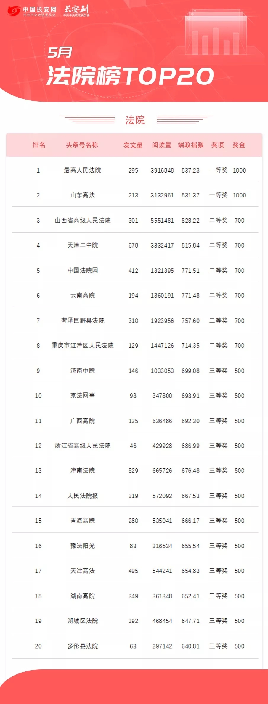 中央政法委官方新闻网站中国长安网、中央政法委长安剑联合今日头条,独家发布2019年4月政法头条号排行榜,包括政法委、法院、检察、公安、司法等政法系统新媒体榜单。