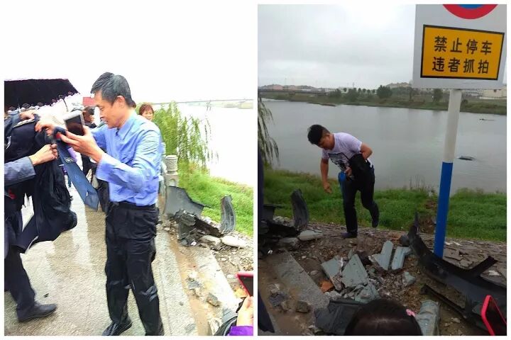 此时回头再看,落水车辆已在河水中淹没。而在救起3名落水市民且确认3人暂时无大碍后,朱守忠和李炎随即穿过围观的人群,离开了事故现场。
