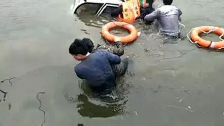 “警察同志,赶紧救人,车子在下沉,里面的人还没出来呢。”