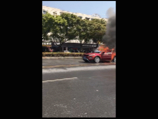 一辆红色路虎燃起熊熊大火