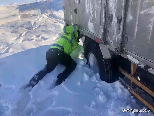 青海省果洛州玛多县公安局交警大队、花石峡交警中队全体民警已连续15个小时开展疏堵保畅工作,依靠人力走一段,清一段,连续清除36公里的路面积雪。在深雪区执勤的警车被困,民警只能徒步5公里加快步伐向玛卿雪山垭口进军,必须用最快的时间将被困的老人和小孩迅速转移到最近的花石峡卫生院。30日22时,在受困现场,民警第一时间将病重老人和小孩送往花石峡卫生院,又将携带的开水、方便面等送到受困群众手中。随之,民警立即联系花石峡养路段、路政、镇政府等单位人员和机械设备,联合开展铲冰除雪作业。