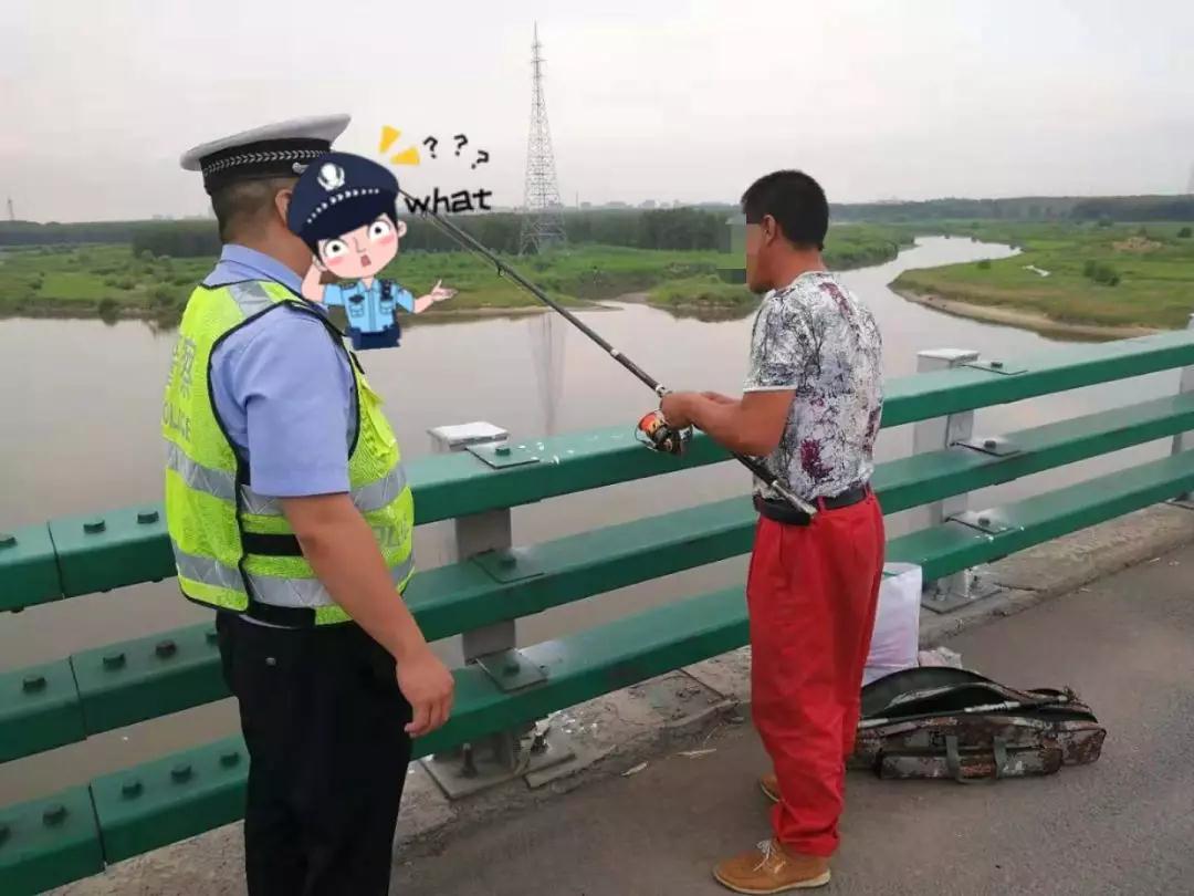 7月8日,吉林高速公安松原分局民警巡逻至松花江大桥(大广高速长春方向190+500米)时发现桥上有一男子竟将钓鱼竿支在桥旁护栏边悠闲垂钓。男子的身后,过往车辆是一波接着一波,男子却仍能稳坐钓鱼台,让民警惊出一身冷汗。