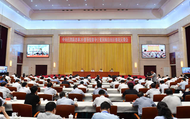 根据全国扫黑除恶专项斗争领导小组的部署,7月28日,中央扫黑除恶第20督导组督导宁夏回族自治区情况反馈会在银川召开。中央扫黑除恶第20督导组组长韩勇向宁夏通报督导情况,自治区党委书记石泰峰就做好督导整改工作作表态讲话,督导组副组长张力出席。自治区党委副书记、自治区主席咸辉主持会议。