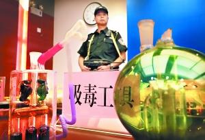警方展示缴获的吸毒工具。莫伟浓 摄