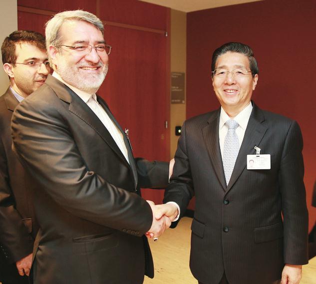 国务委员、国家禁毒委员会主任、公安部部长郭声琨在纽约联合国总部会见伊朗内政部部长法兹利 张建鑫 摄