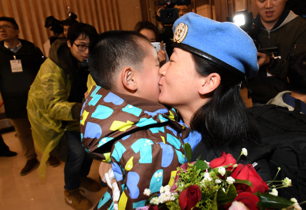 3月12日晚上6点18分,由浙江公安边防总队组建的中国第四支赴利比里亚维和警察防暴队,在圆满完成为期一年的国际维和任务后,乘包机抵达杭州萧山国际机场。