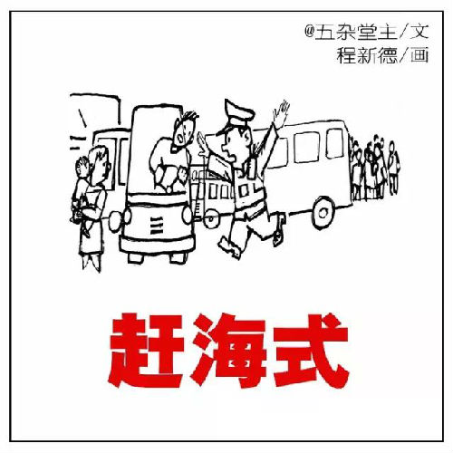 注意,这一招不是有水的海,而是车流人海。总有那么一些人,无视滚滚车流茫茫人海,在路上任性乱穿随意乱窜,更可怕的是有部分人还带着孩子。交警看着那个焦心啊,可不得飞奔过去将其拉回安全地带嘛!于是乎,谓之“赶海式”。