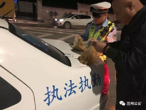 凌晨5时左右,夜中的交警仍然忙碌在一线执勤岗位,趁着工作的空隙,一袋热乎乎的炒面让早已冰凉的双手顿时暖和起来,为了不耽误时间,大家迅速趴在警车后备箱盖上吃完,又投入到另外一场工作中去了。