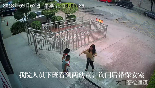 此时已到下班时间,两幼儿因见不到亲人而大哭,法院工作人员下班发现立即将孩子带进保安室看护并及时报告值班室。