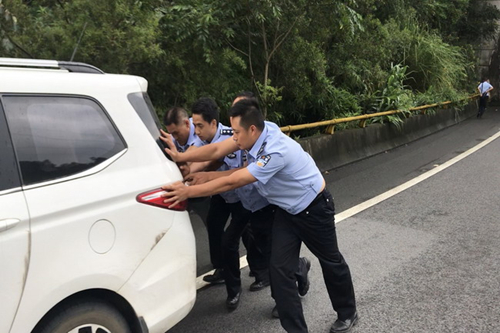 为确保云南省普洱市墨江“5.9”级地震抗震救灾大通道安全、畅通、有序,大队在借助指挥中心开展网上“鼠标”巡逻的同时,强化对路面警力巡查力度,9月14日14时38分许,当巡逻组巡逻至元磨高速墨江通关段巴蕉箐隧道时,看到隧道内左侧快速车道上停着一辆打着双闪灯的面包车,在该车前方不远处隧道出口右侧车道上还停着一辆,当时,两车停车位置存在事故死角区,且高速路车流量很大情况十分危急,见状巡逻组人员不顾个人安危,在邓迎春大队长、黄攀副大队长带领下第一时间对两车人员进行紧急安全疏散,并指派警力在隧道入口安全地带对来车进行短时交通管制,随后,化身推车哥一起把两辆故障车推出了隧道,避免了追尾事故的发生,确保了救援大通道的安全,在推车过程中元磨交警用脚步丈量了爱和倾情奉献的尺度。