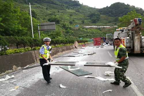 普洱市墨江“5.9”级地震发生后的第三天15时许,辖区接到报警称“老苍坡路段有一辆重型货车侧翻,所载货物玻璃门散落严重导致交通中断……”接警后,已在抗震救灾一线连续奋战两天的大队教导员祁俊维带领事故处理民警第一时间抵达现场,看到路面被支离破碎的玻璃阻断近100米的路面,他们冒着被划伤的危险,顶着烈日毫不犹豫徒手将一扇扇“龇牙咧嘴”的玻璃门抬移到了路外;找到树枝、树叶等一切可能利用的工具快速清扫出了一条应急车道,保障了三辆应急救援车辆的优先通行。然而车祸无情,当晚23时许一辆重型货车在车道内自燃导致交通中断,元磨高速公路交巡警大队的忠诚卫士们,立即将应急救灾车辆、小车客车分流绕行,并投身到熊熊大火中灭火,只为将人民群众的生命财产损失减少到最小,在抗震救灾的外围续写了一幕幕抗震保通的感人事迹,保障了“生命大通道”的安全、畅通、有序。
