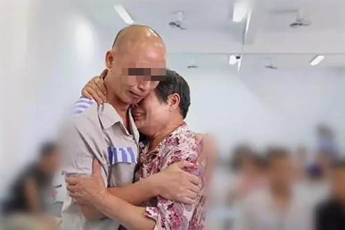 人群中,服刑人员施某某一眼就看到了自己头发花白的老母亲,他大踏步走向母亲,一把搂住了母亲和同来的妻女。这个拥抱足足持续了3分多钟,看得出来,谁都不舍得松手。