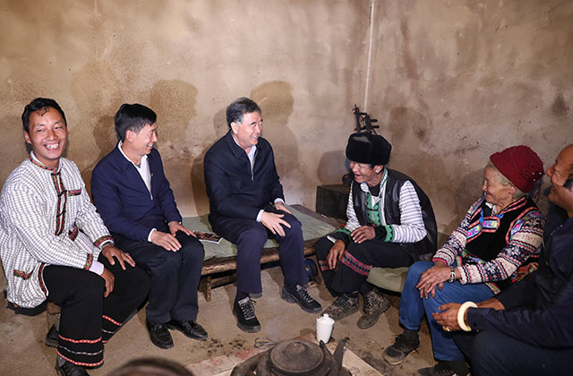 近日,中共中央政治局常委、全国政协主席汪洋在云南调研藏区民族宗教和脱贫攻坚工作。这是10月15日,汪洋在香格里拉市虎跳峡镇金星村调研。新华社记者丁林摄