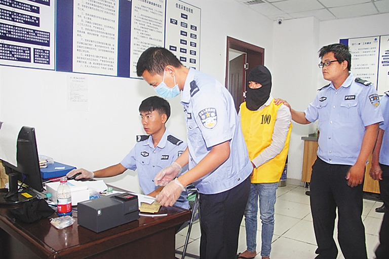 民警采集涉案犯罪嫌疑人信息。