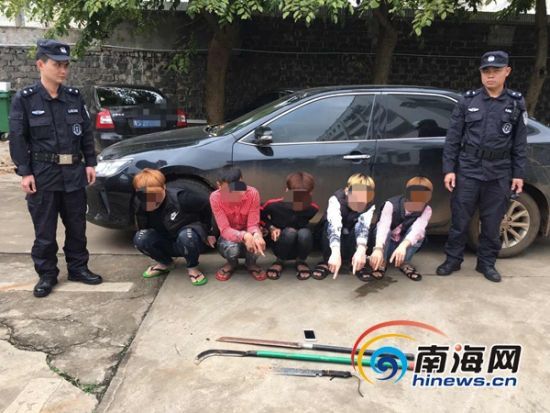 5名男子凌晨持刀抢手机,被临高警方抓获后在指认作案工具。 临高警方 供图