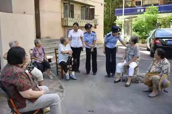 挂甲寺派出所辖区内有很多老旧小区,老住户们在这住了三十多年,孩子们一上班,大娘们就凑在一块搭搭话,排遣排遣。休息时,服务队就来陪大娘们聊聊天,拉拉家常,一来二去辖区的情况明了,老人们的心也热乎了。逢人就夸,“跟自己闺女一样!”