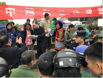 为全面推进“七五”普法工作落实,全面提升边境地区群众法律素养,进一步强化边境管理,全力打击跨国跨境黑恶势力犯罪,营造边疆安全稳创造良好法治环境。近日,文山州麻栗坡县杨万乡综治办、司法所、派出所、边境站与越方在358号界联合开展了“跨国跨境黑恶势力犯罪固边防”法治宣传活动。
