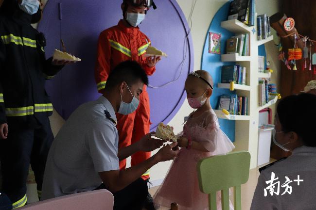 4月16日下午,宁波女孩王佳宁在深圳一所医院里度过了自己4岁生日。很特别的是,在生日会上,深圳消防救援支队的消防员们帮她圆了消防梦。