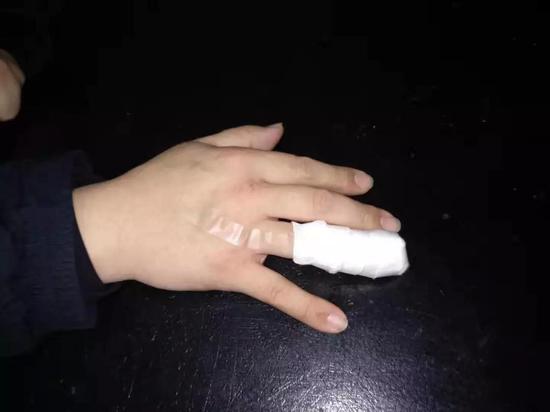 反扒民警口中轻描淡写的小伤其实是被锋利刀片划出的一道又长又深的伤口。(照片由公交总队提供)