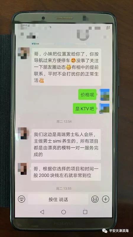 几名顾客分别表示,自己在微信以及车前玻璃上看到了该会所的广告。该会所表示提供“高端男性服务”,广告上还印有穿着暴露的女性图片,同时使用隐晦又十分挑逗的词汇表明提供“色情服务”。通过上面的微信号、手机号,他们与对方取得联系。客服在言语中显得是客气,言必称“贵宾”,并邀请自己先到会所进行体验。