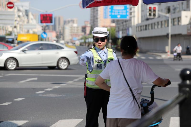 不用多久,汗水开始穿透防晒霜。记得刚刚上岗的时候,戴上墨镜除了酷酷的感觉,更是避免与交通参与者有眼神交流,也不知道要怎么开口,经过两个月的实习,这道“墙”消除,警言警语运用自如。