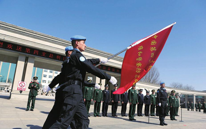 中国第四支赴利比里亚维和警察防暴队出征仪式3月10日在中国维和警察培训中心举行。出征仪式结束后,110名防暴队员从北京首都国际机场乘包机赴利比里亚任务区,开始执行为期一年的维和任务。公安部维和警察领导小组成员单位有关负责人出席仪式,为防暴队送行。